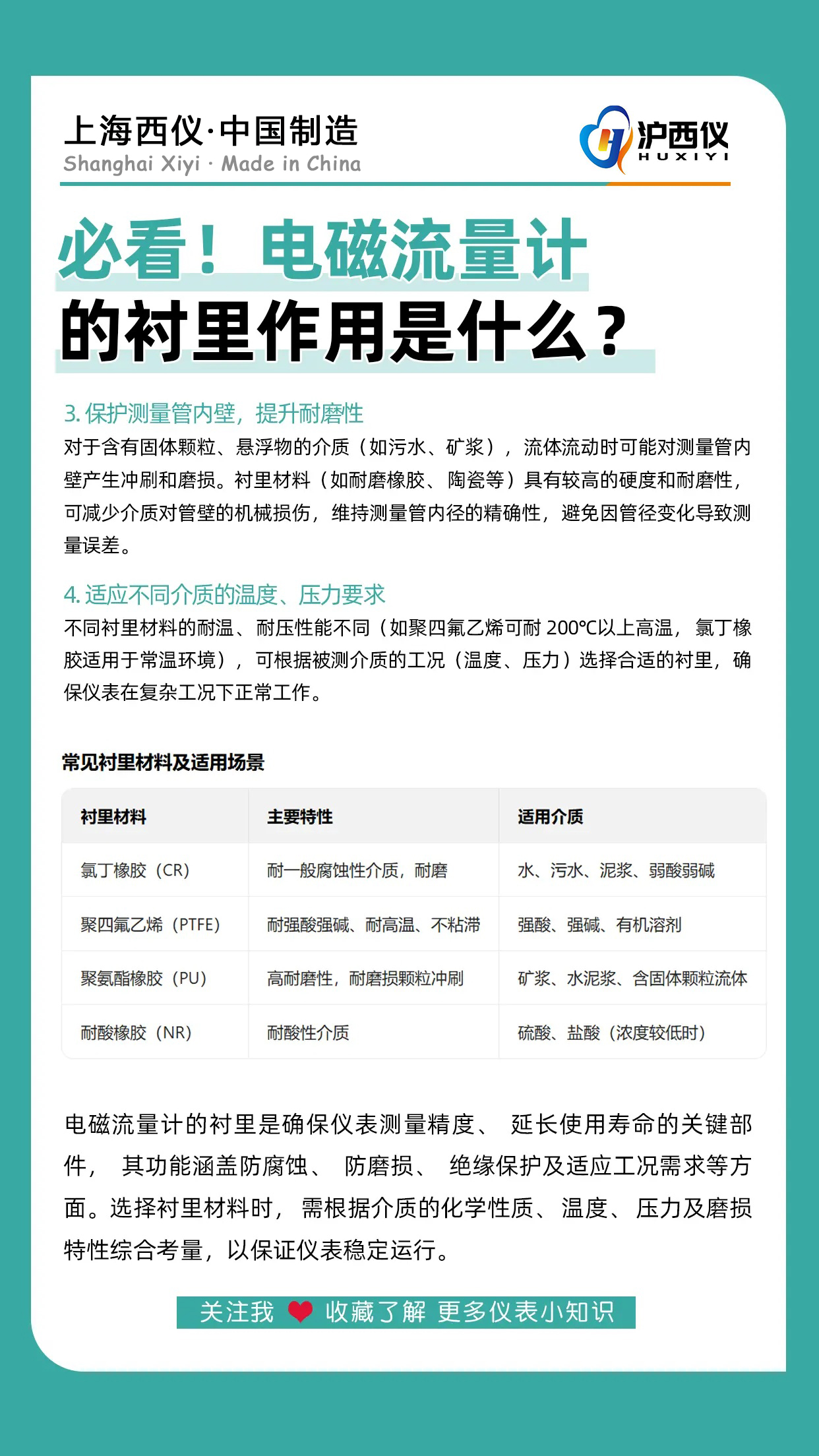 電磁流量計的襯里是安裝在測量管內壁的一層耐介質腐蝕、耐磨的防護層。