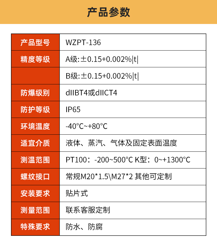 精度等級:A級±(0.15+0.002|t|)℃ B級±(0.30+0.005|t|)℃ 注:|t|為實測溫度的******值。