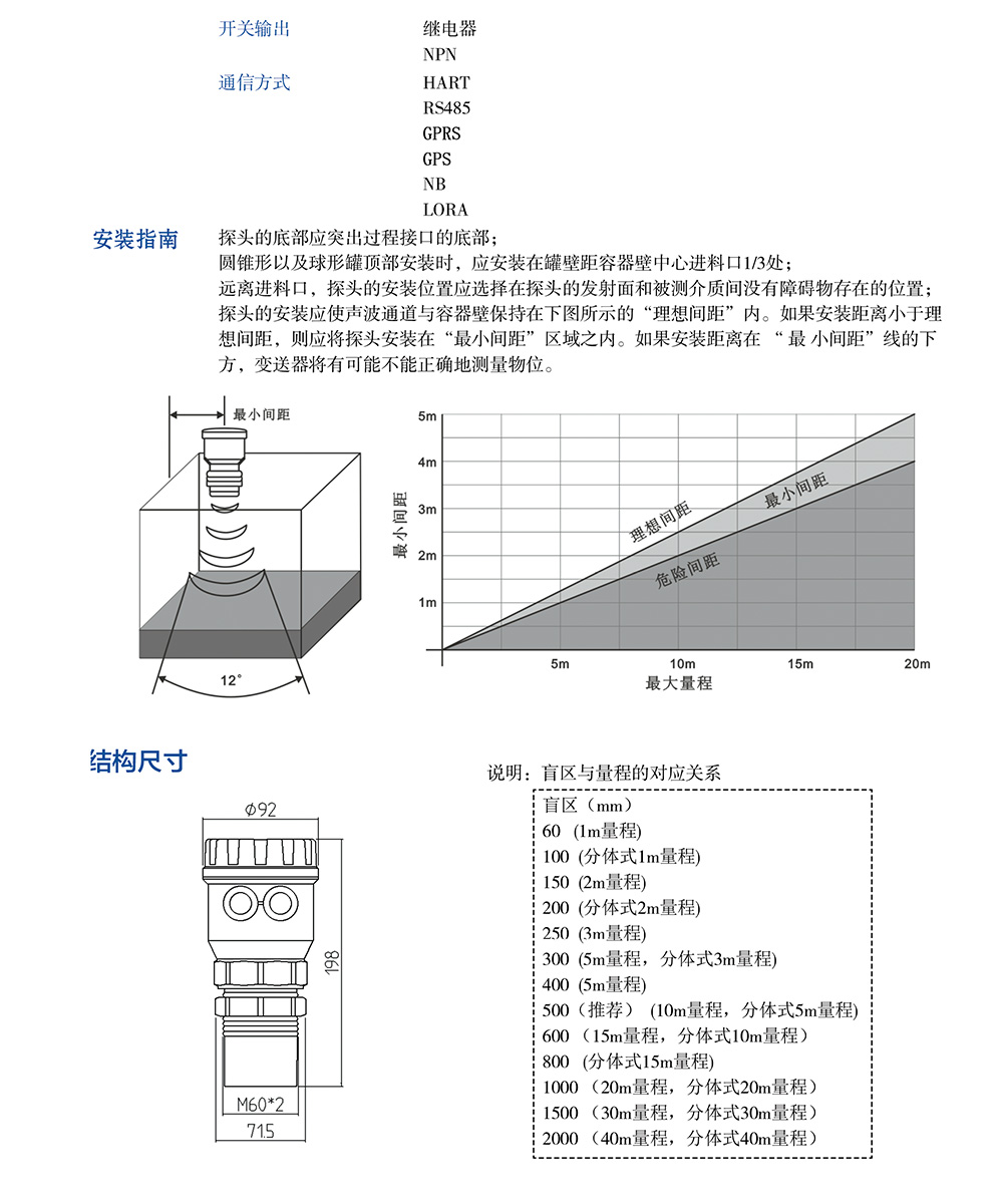 適用測(cè)量的介質(zhì) : 適用于大部分液體及粉狀顆粒狀固體,弱酸,弱堿,強(qiáng)堿,低于40%的強(qiáng)酸。若在強(qiáng)酸應(yīng)用場(chǎng)合,請(qǐng)與我司聯(lián)系,應(yīng)使用防腐探頭。